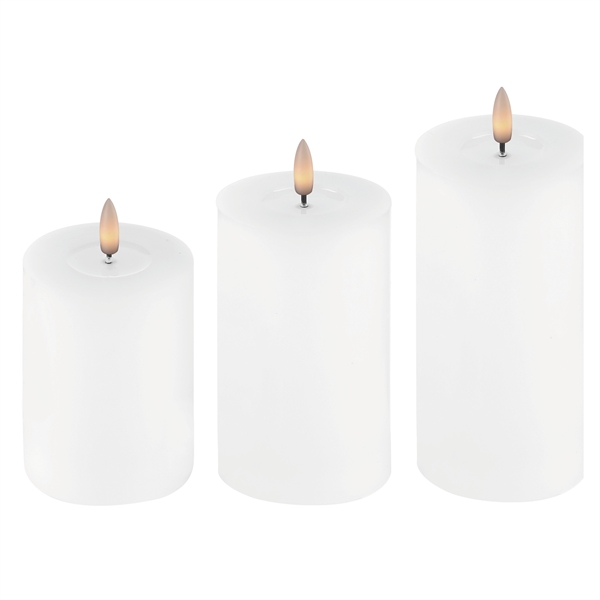 3-Pak LED Bloklys 7,5 x 10, 12,5 og 15 cm Vokslys med Resin, Hvid