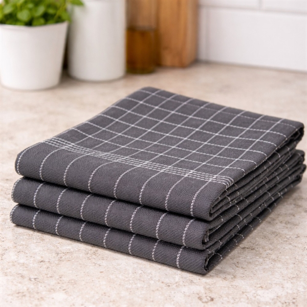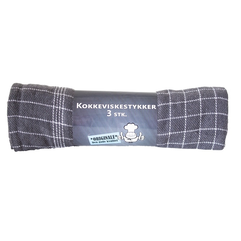 Disse mørkegrå viskestykker i 3-pak er kendte og klassiske kokkeviskestykker med hvide, ternede detaljer. Det tidløse design kombineret med den moderne mørkegrå farve er både et stilrent udtryk og funktionelt, der passer ind i de fleste køkkener. Viskestykkerne er fremstillet i 100% bomuld, som sikrer høj sugeevne og effektiv tørring af service, hænder og køkkenoverflader. Med målene 50 x 70 cm har viskestykkerne en praktisk størrelse, som gør dem velegnede til daglig brug, både i hjemmet eller i det professionelle køkken.