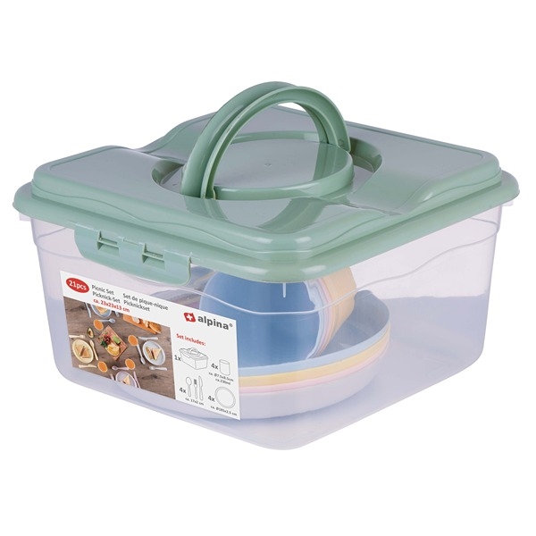 Alpina Picnic Servicesæt i Plastik til 4 Personer, med Beholder Alpina Picnic Servicesæt i Plastik til 4 Personer, med Beholder