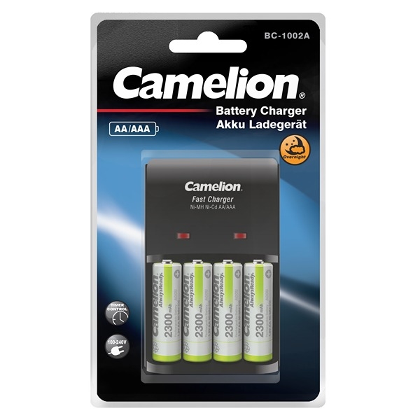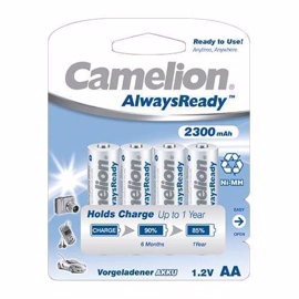 Camelion oplader med 4 AA Ready to use batterier på 2300mAh.