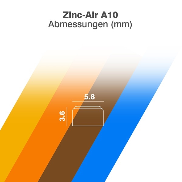 Zinc Air batterier Spænding : 1,4 volt Kapacitet : 105 mAh Højde : 3,5 mm Diameter : 5,8 mm Batteriet er identisk med :