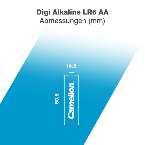 Camelion AA alkaline batterier med ekstra høj ydelse, for brug i feks digital kamera. Kåret som testvinder i Tyskland, som absolut bedste køb på markedet i forhold til dyreste alkaline batterier.
