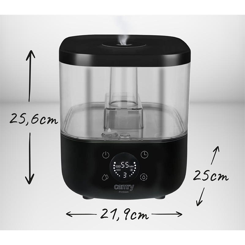 Produkt:  Camry CR 7973b Ultralyds Luftfugter med Hygrostat, Timer & Aroma, 5 L, Sort