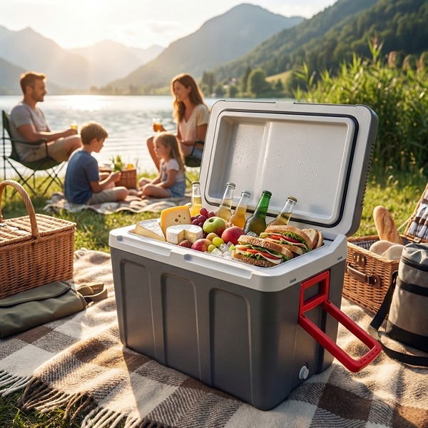 Praktisk og rummelig køleboks på 40 liter, perfekt til camping, bilferie og picnic. Denne model kommer i et flot grå design, der giver et moderne og funktionelt udtryk. Med både 12V og 230V tilslutning kan du bruge den i bilen og hjemme. Køleboksen har termoelektrisk Peltier-system og kan køle op til 18-22°C under omgivelserne samt holde mad varm. Den solide konstruktion med 25-30 mm isolering sikrer stabil temperatur i flere timer. Udstyret med hjul, ergonomisk håndtag og låg med hængsel for nem transport og brug. Ideel til mad, drikke og udflugter.