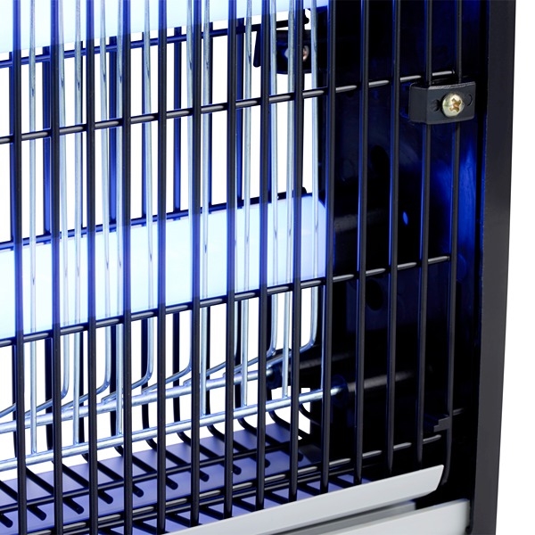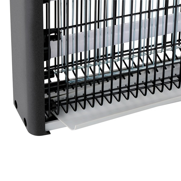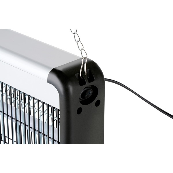 Enheden tilsluttes nemt med det medfølgende 230V strømstik og kan enten stå frit eller hænges op i den medfølgende kæde, så den passer perfekt ind i dit hjem. Den aftagelige bundbakke gør rengøringen enkel, da du hurtigt kan tømme de fangede insekter uden besvær.