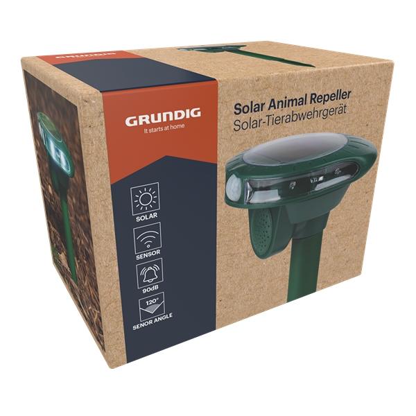 Produkt:  Grundig Solcelledrevet Dyreskræmmer med Sensor 5-8m, Grøn