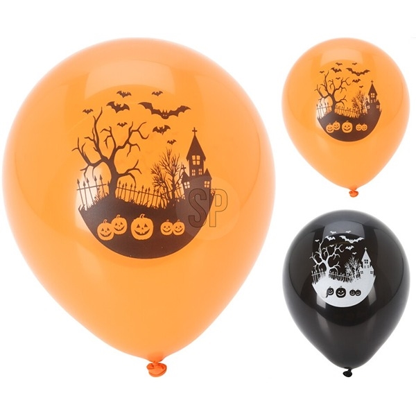 Med dette sæt får du 10 skræmmende Halloween balloner, perfekte til en festlig og uhyggelig anledning. Pakken indeholder 5 orange balloner med sort print og 5 sorte balloner med hvidt print.
