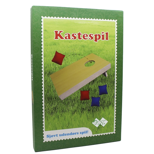 Dette klassiske kastespil i træ er et underholdende familiespil til både børn fra 3 år og voksne. Spillepladen måler 40 x 27 x 2,5 cm og leveres med 4 ærteposer i rød og blå. Den stabile trækonstruktion gør spillet velegnet til haven, terrassen, stranden eller sommerfesten.