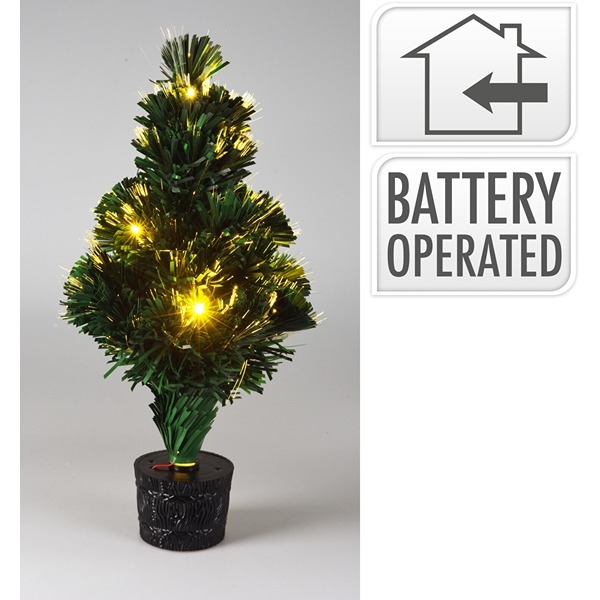 Dette smukke, kunstige fiberoptiske juletræ er det perfekte dekorationselement til juletiden. Det lille juletræ har 10 varm-hvide LED-lys, så du får en rigtig hyggelig stemning. Træet har i alt 45 grenspidser, der giver det et fyldigt udseende. Det er batteridrevet og kræver 3 x AA-batterier (medfølger ikke), hvilket gør det nemt at placere træet, hvor du foretrækker det – som din egen lille juleverden på skrivebordet. Træet er designet til indendørs brug og måler H: 45 x Ø: 22 cm. Juletræet kommer med en lille plastikfod/potte. Få det til at passe ind i din indretning ved at sætte det i din egen yndlingspotte.
