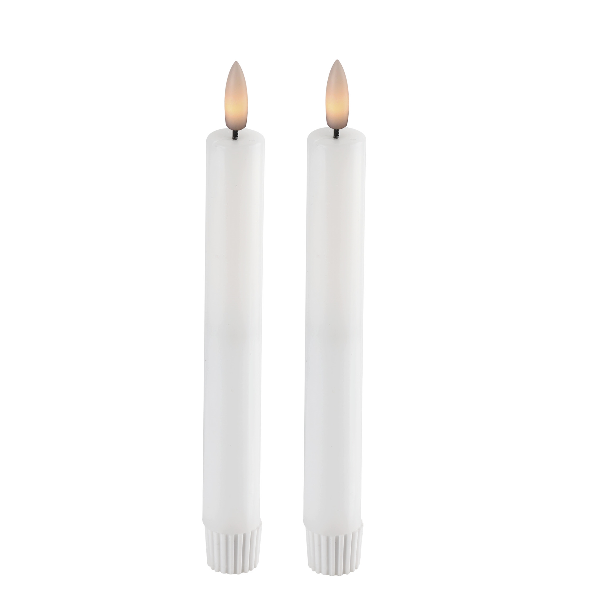Bring hyggen ind i hjemmet med dette sæt på 2 hvide LED vokslys kronelys i klassisk hvid design. Hvert lys er 18 cm langt og passer perfekt i almindelige lysestager. Med en 3D flamme får du et levende og autentisk lys, der ligner ægte stearinlys – men helt uden brandfare og sod.
