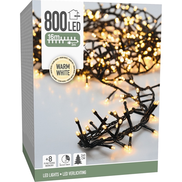Produkt:  LED Micro Cluster Lyskæde 16 m 800 LED, Varm Hvid