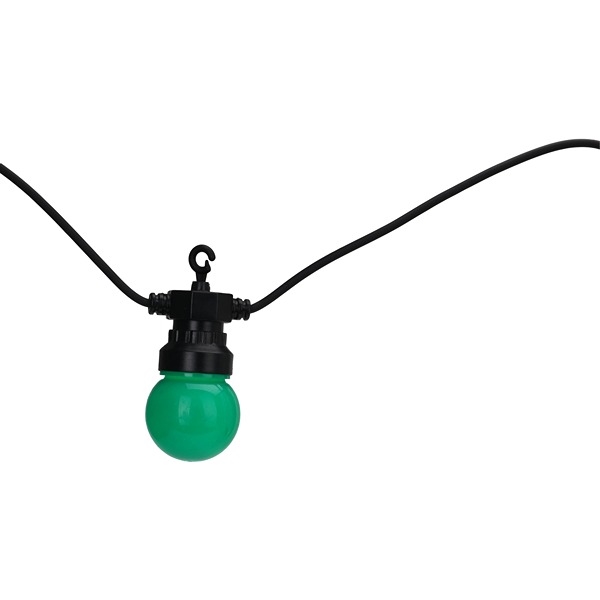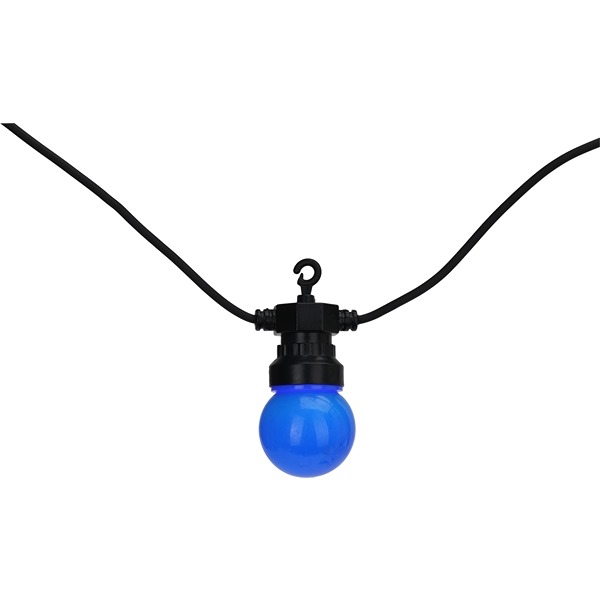 Skab hyggelig feststemning med denne LED party lyskæde. De 9,5 meter er selve lyskæden med pærer (ekskl. 5 m tilslutningsledning). Kæden har 20 pærer (Ø50 mm) i rød, gul, grøn og blå – hver med 5 mini LED dioder for klart og jævnt lys. Der er 50 cm mellem pærerne. Lyskæden har indbygget timer (6 tændt/18 slukket), er IP44 vandtæt og velegnet til udendørs brug. Kan forlænges med op til 4 lyskæder. Perfekt til have, terrasse og fest.
