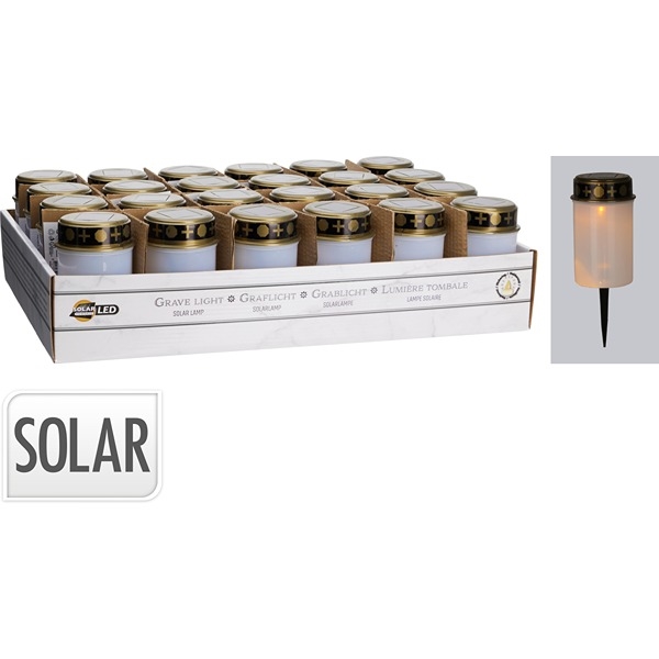 LED solcelle gravlys med spyd i hvid er en elegant og praktisk løsning til gravstedet. Lyset måler 12 cm i højden og har et robust spyd, som gør det nemt at placere sikkert i jorden. Den hvide skærm kombineret med den dekorative gyldne top giver et klassisk udtryk. Solcellefunktionen oplader lyset automatisk i dagslys, og den indbyggede LED tænder selv ved skumring med en varm, behagelig glød. Du får dermed et vedligeholdelsesfrit gravlys til udendørs brug uden ledninger eller hyppige batteriskift. Ideelt som stilfuld gravbelysning året rundt.
