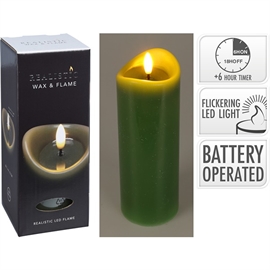 LED Voks Bloklys med Realistisk Flamme Ø: 7 x H: 10 cm, Mørkegrøn