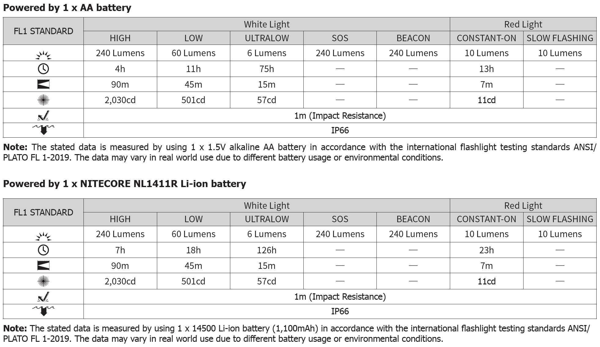 Nitecore HA11 UHE kan anvendes med ét almindeligt AA-engangsbatteri, som er nemt at skaffe overalt. Alternativt kan den bruges med det genopladelige Nitecore NL1411R, som oplades direkte via USB-C-port i selve batteriet. Batteriet medfølger ikke, men giver en praktisk løsning til dig, der ønsker en mere genopladelig pandelampe uden ekstern oplader.