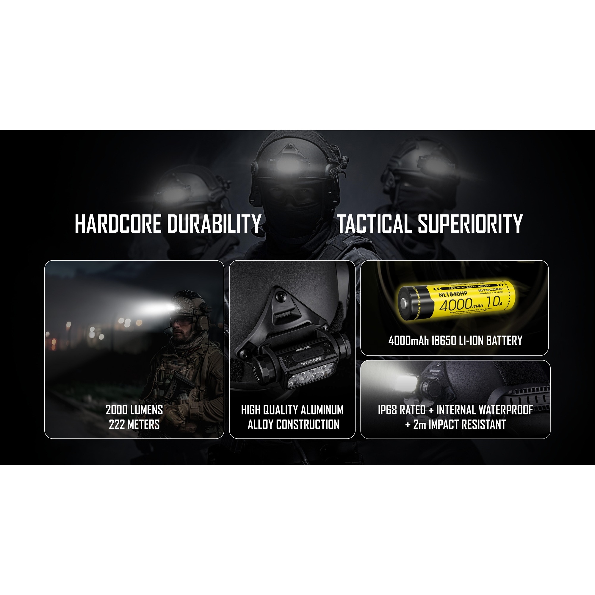 Nitecore HC65M UHE – taktisk pandelampe til NVG-beslag