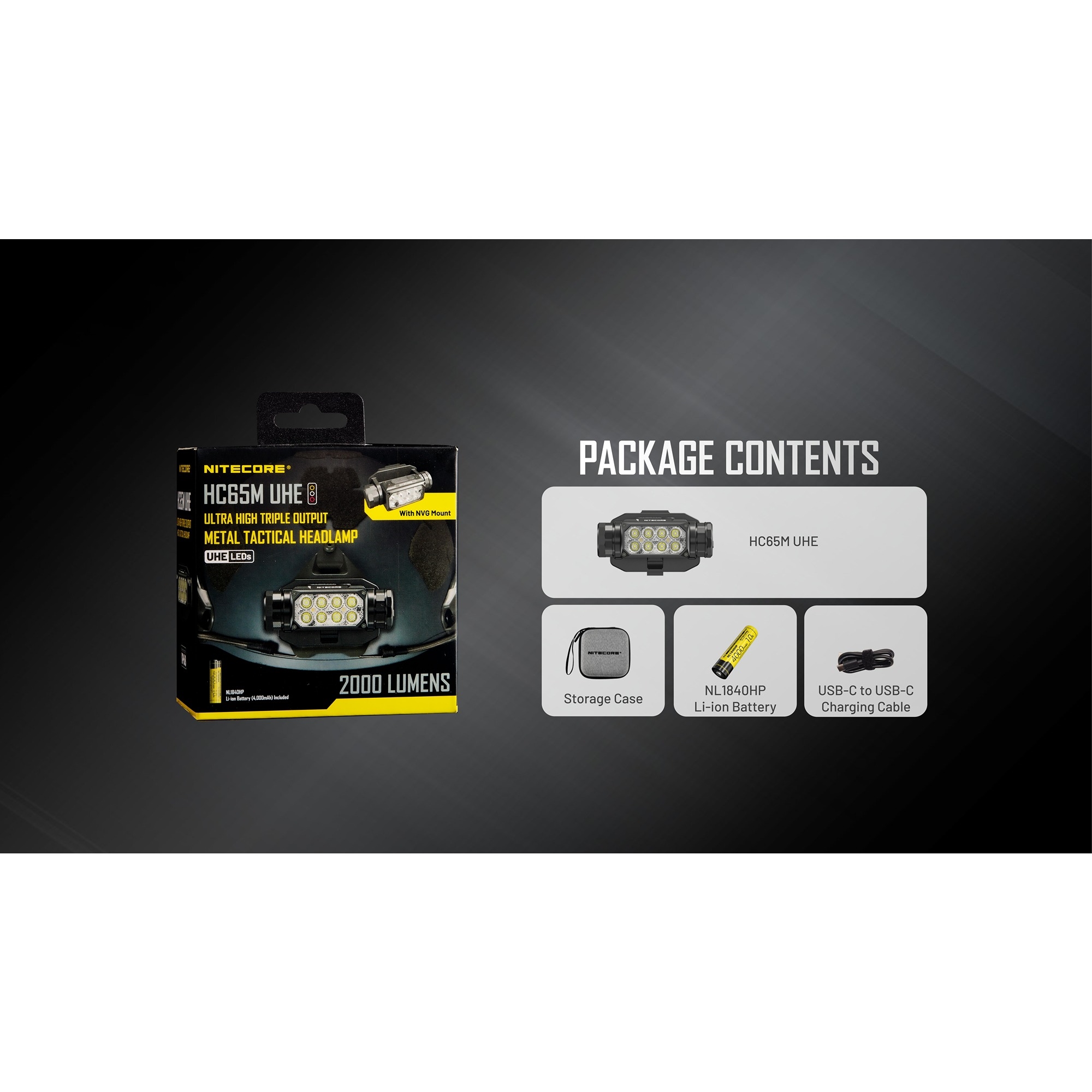 Produkt:  Nitecore HC65M UHE Genopladelig Pandelampe til NVG Beslag til Hjelm 1600 lumen