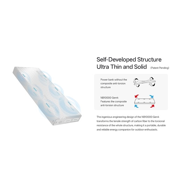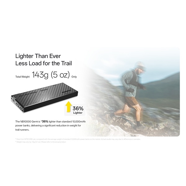 NB10000 Gen4 er en let og ultra-slim USB-C powerbank på 10.000 mAh, udviklet til dig, der ønsker høj ydeevne, lav vægt og pålidelig opladning. Den er ideel som powerbank til rejser, outdoor-aktiviteter, pendling og daglig brug, hvor kompakt størrelse og hurtig opladning er afgørende. Powerbanken måler 116 × 46,8 × 14,5 mm og vejer kun 143 gram, hvilket gør den nem at have med i lommen eller tasken.