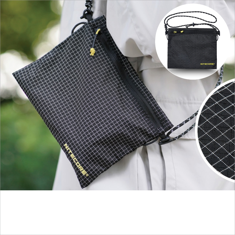 Nitecore NPP01 er en kompakt og praktisk skuldertaske designet til både hverdag og outdoor. Med en vægt på kun 50 g og en kapacitet på 1 liter giver den plads til smartphone, nøgler, kort eller andre småting, du skal have lige ved hånden.
