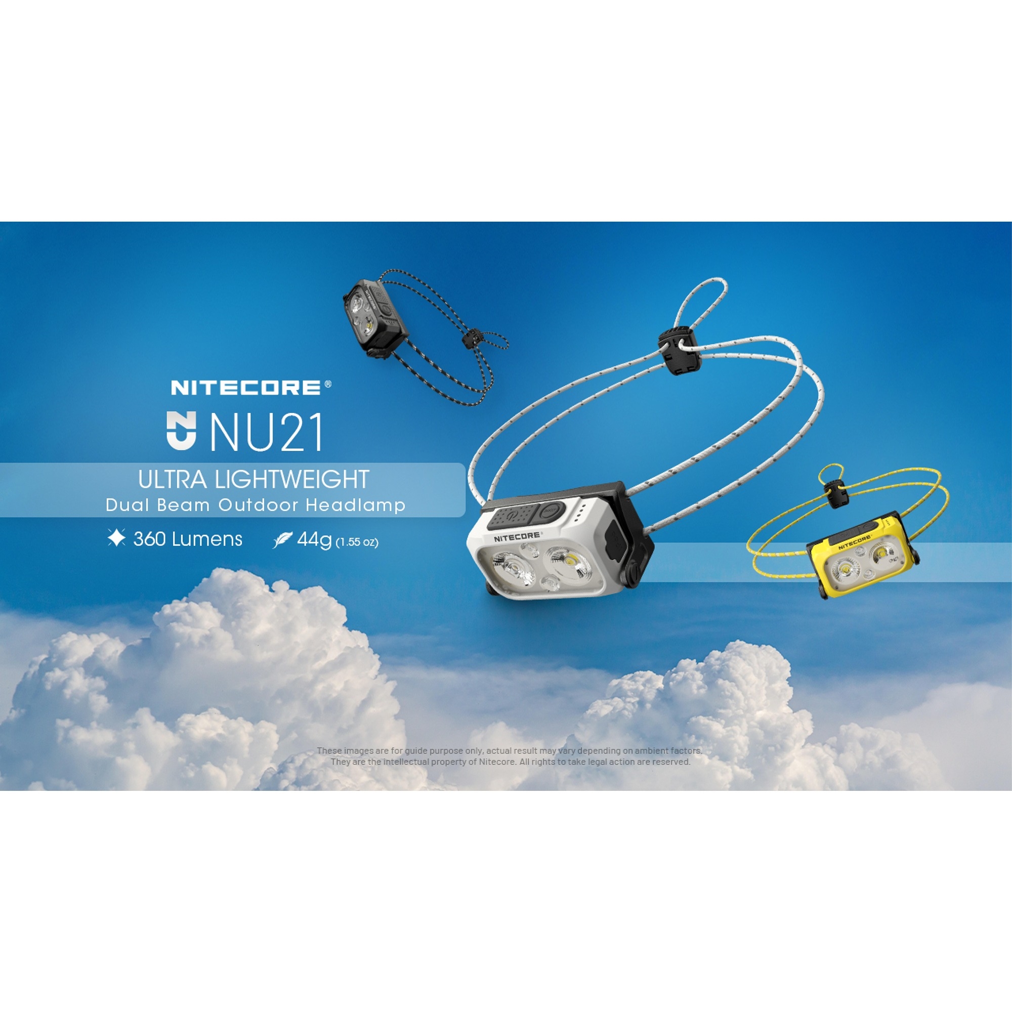 Nitecore NU21 er en ultralet og kompakt Nitecore pandelampe, udviklet til sportsgrene som f.eks. løb, men også vandring og andre outdoor-aktiviteter, hvor lav vægt og pålidelig belysning er afgørende. Med en maksimal lysstyrke på 360 lumen leverer den overraskende kraft i et minimalistisk design.