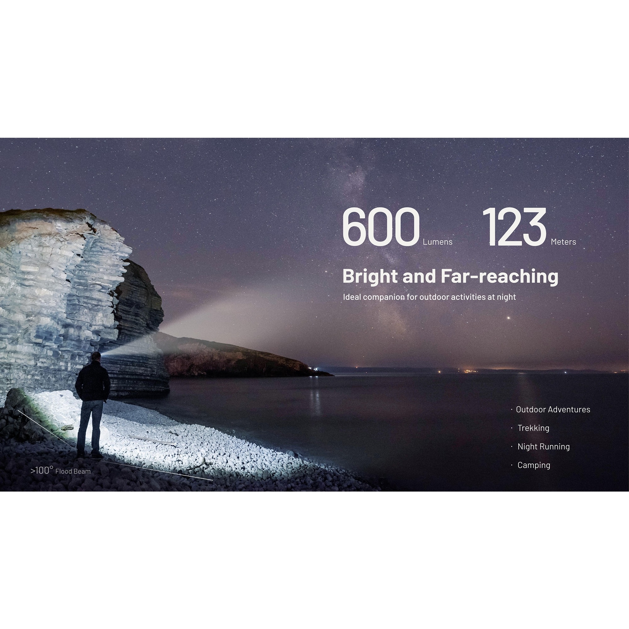 • 100 graders flood-lyskegle med op til 123 meters rækkevidde
