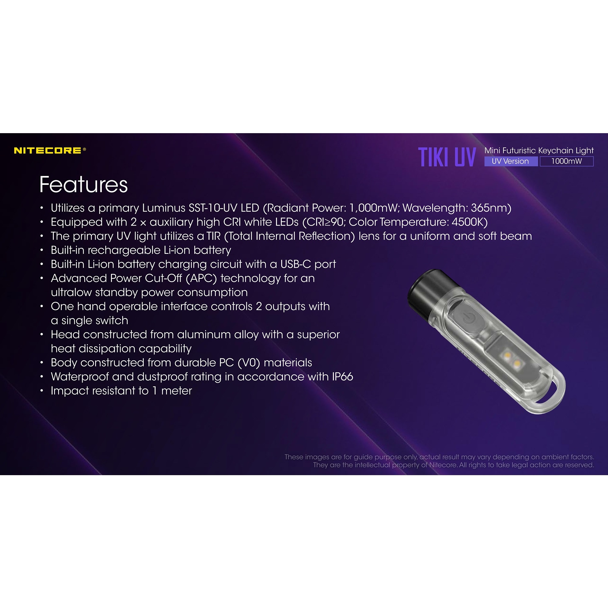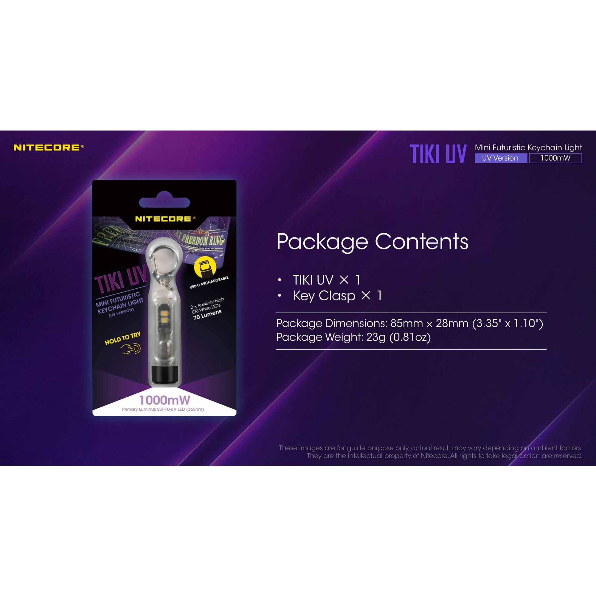 Nitecore TIKI UV Genopladelig Nøgleringslygte med UV Lys 70 lumen