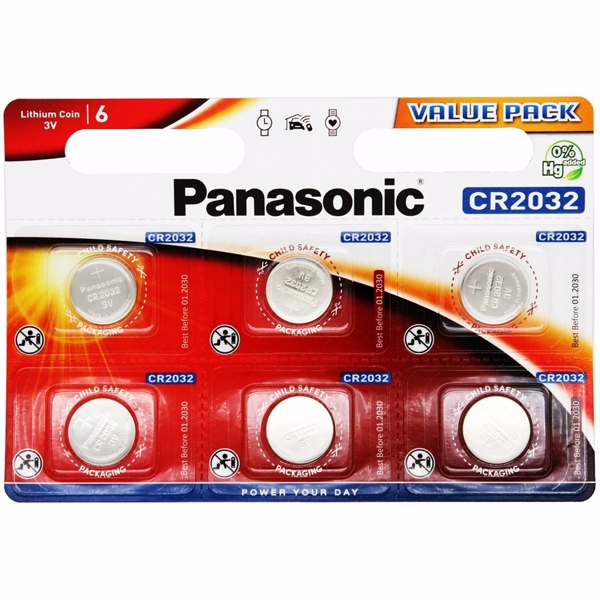 Panasonic CR2032 3V Lithium Batteri, 6 pak