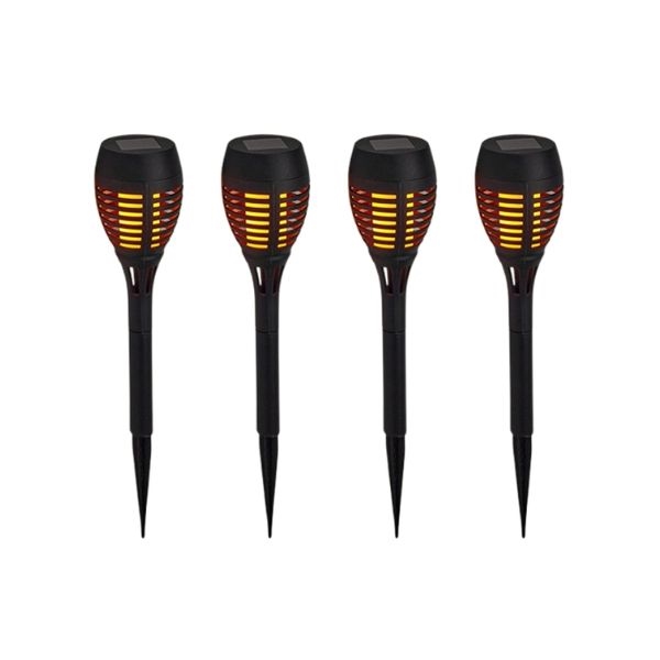 Sæt med fire fakler. Perfekt langs havegange, i bede, krukker eller på terrassen, hvor den skaber hyggelig atmosfære uden strømforbrug.