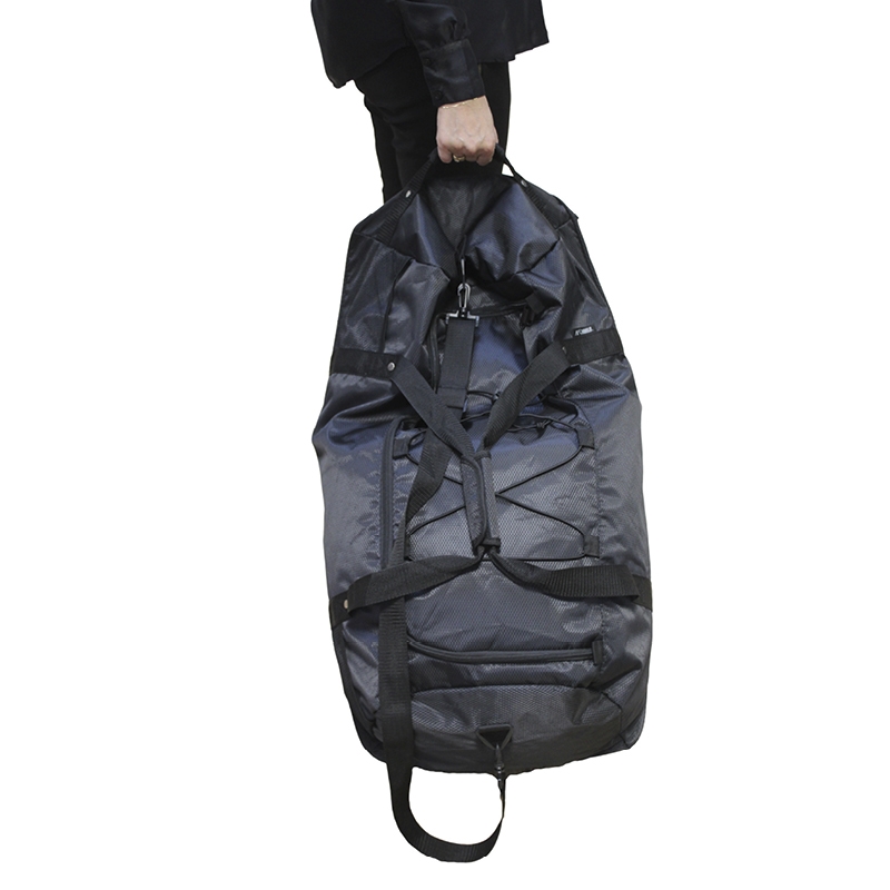 Tasken har sort lynlås, elastiksnor øverst til at fastgør et tæppe eller pude under og 2 praktiske mesh-sidelommer til f.eks. vandflasken. Når den ikke er i brug, kan rejsetasken nemt rulles sammen for pladsbesparende opbevaring, eller som en ekstra taske med i kufferten. En alsidig, let og funktionel rejsetaske til både weekendture og lange rejser.