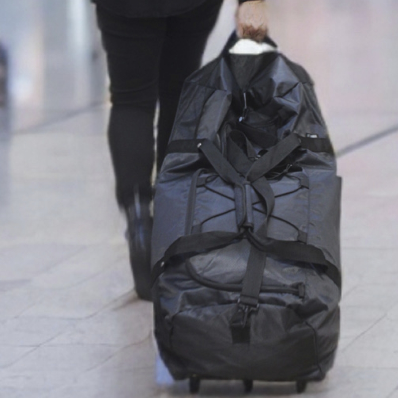 Foldbar og rummelig sort rejsetaske med hjul