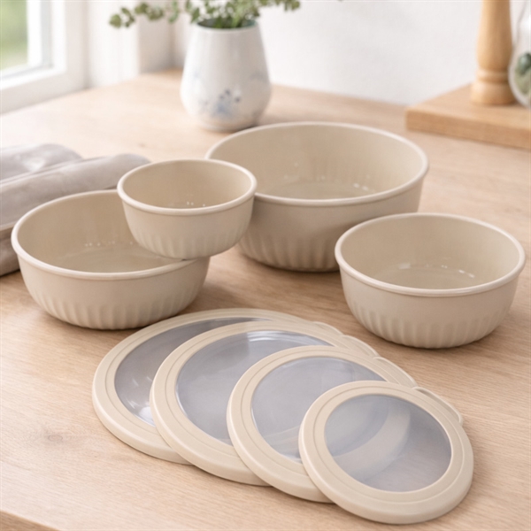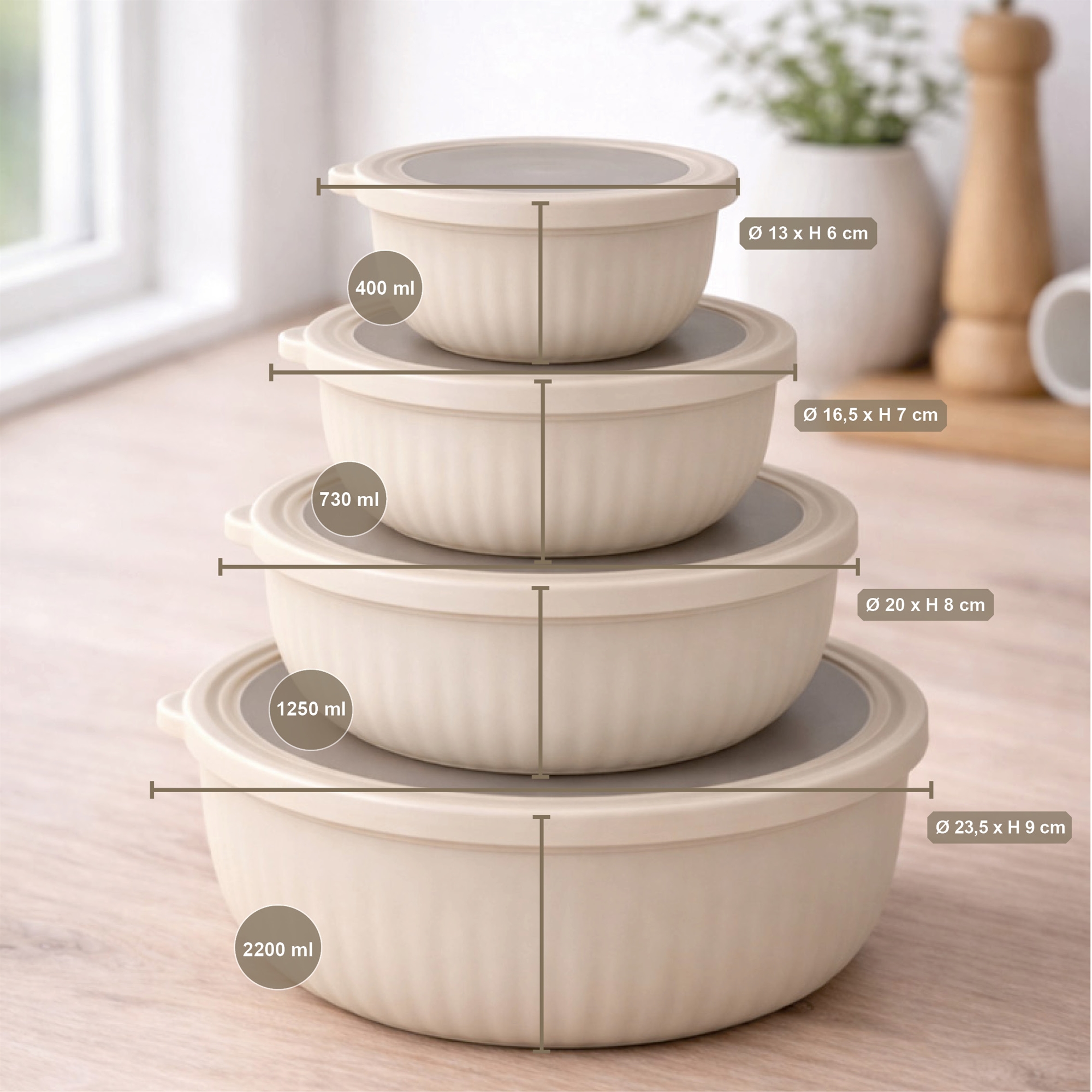 Skålesæt med Låg i Rund Form 4 stk. i Plast, Beige