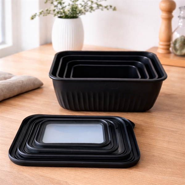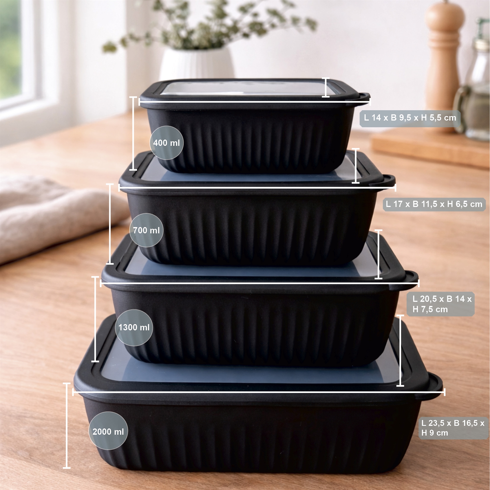 Skålesæt med Låg i Rektangulær Form 4 stk. i Plast, SortSkålesæt med Låg i Rektangulær Form 4 stk. i Plast, SortSkålesæt med Låg i Rektangulær Form 4 stk. i Plast, Sort