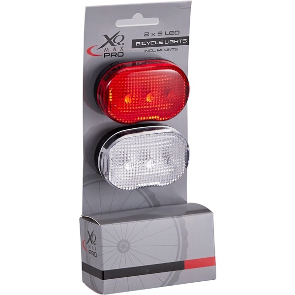 Få maksimal synlighed og sikkerhed i trafikken med dette XQ Max Pro cykellygtesæt, der består af en klar LED-forlygte og en rød LED-baglygte. Begge lygter har 3 kraftige LED’er, som sikrer stærk belysning og høj synlighed i mørke.